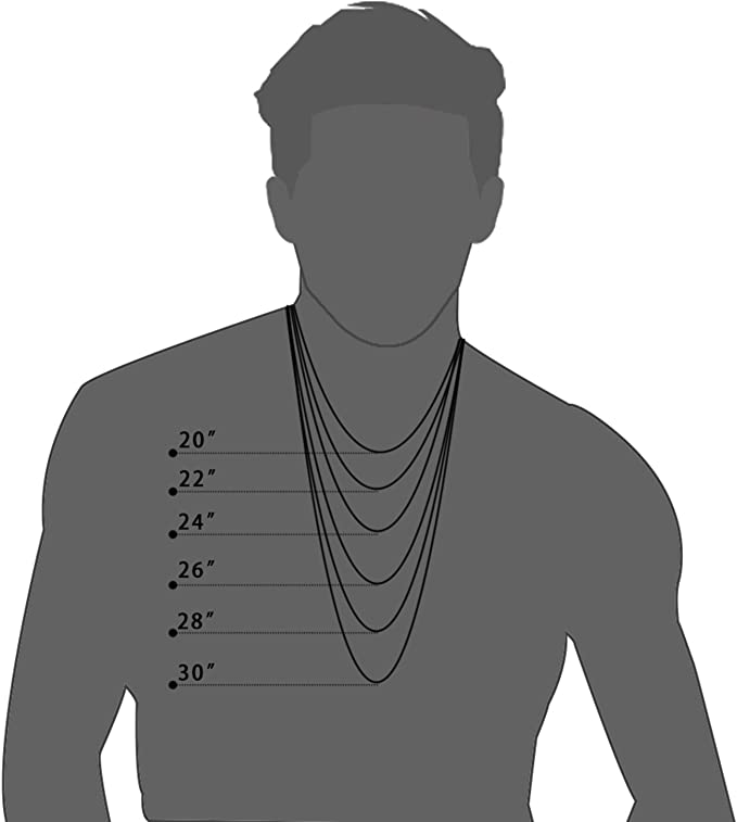 The pendant size is .66 in. x 2.2 in. The chain is apporx. 24 in. long. Loved everything about it. It's a great design necklace that can easily accessorize your rock look.